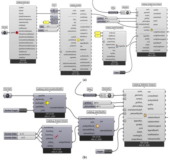 - Kim, H.J.; Choi, W.S.; Kim, J.W. A study on parametric design tool for residential buildings securing valid sunlight hours on the winter solstice. J. Asian Archit. Build. Eng. 2022, 21, 1657–1676. [Google Scholar] [CrossRef]