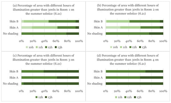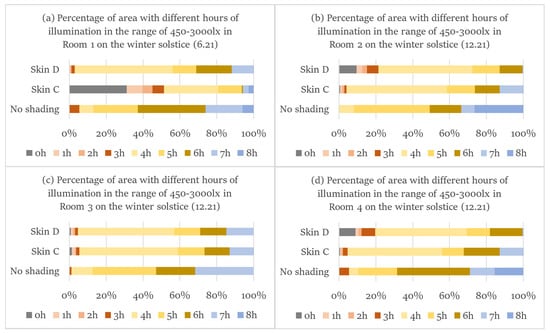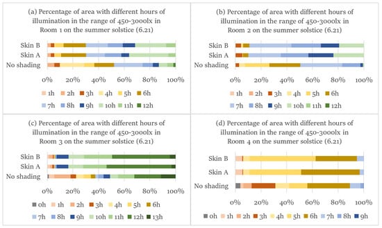 4.2. Percentage of the Area with Different Hours of Useful Daylight Luminance