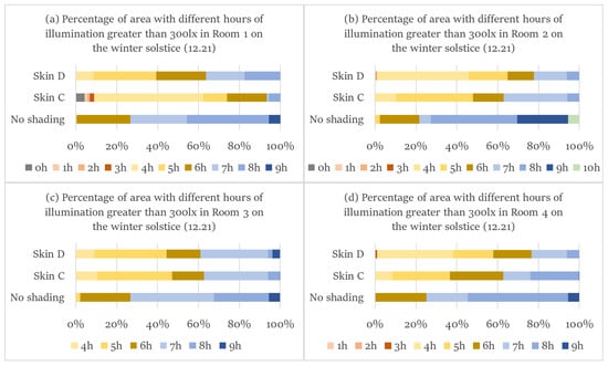 - The research results show that a dynamic building skin based on sunshine duration and solar radiation can significantly improve the indoor light environment of a building on the summer solstice. The indoor illumination can be more comfortable and the probability of an uncomfortable glare can be reduced. In such a building, the indoor illumination will be less comfortable on the winter solstice, although the probability of an uncomfortable glare will be reduced.