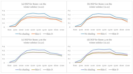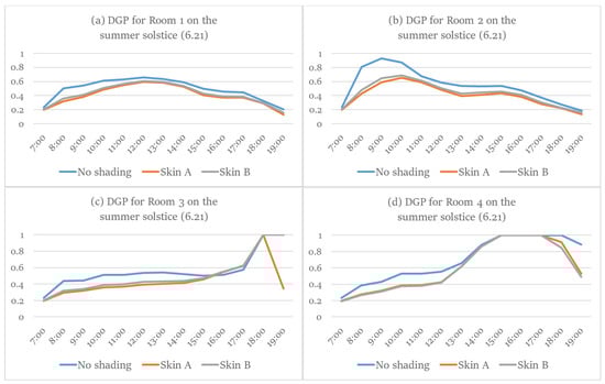 | The Percentage of the Area of the Room with Different Hours of Luminance Greater than 300l× | The Percentage of the Area with Different Hours of Useful Daylight Luminance | DGP | ||||