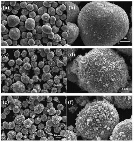Shi X et al. [55] reported on the spherical Li1+xNi0.5Mn0.5O2+δ by preparing the raw materials for RPR by the coprecipitation method. The spherical Ni0.5Mn0.5CO3 carbonate precursor was initially prepared by the coprecipitation route (Figure 3).