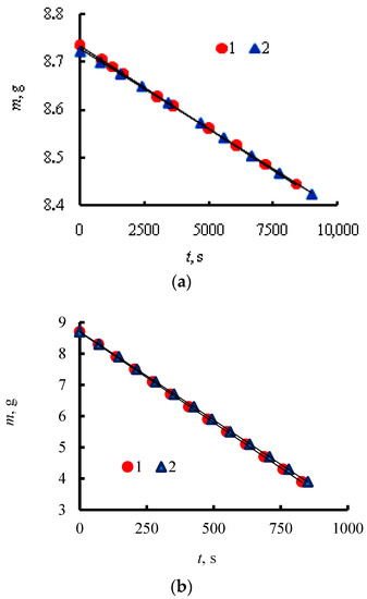 The measurement error of the droplet diameter did not exceed 5%. In the range of contact angle of 90–20°, the inaccuracy of the contact angle of the drop ranged within 3–5%. The maximum error of the evaporation rate did not exceed 5–7%.