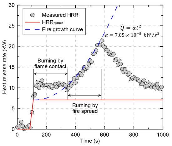 Table 3 summarizes the experimental results in the compartment (maximum HRR, fire growth rate, and damaged area).
