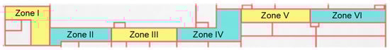 Staircases, which act as communication routes and emergency exits, are located at both ends of the corridor in zones I and VI (Figure 1). The exhaust fan in the smoke ventilation system is located near the center of zone VI [35].