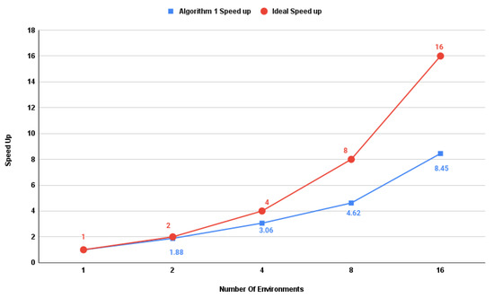 Stable Baselines 3 [43] implementation provides a wrapper that allows for the launch of N CPU threads, each thread works on an environment to collect the experiences; then, these experiences are sent to the GPU to train the agent’s deep neural networks in a faster manner.