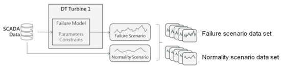To resolve this limitation, the DT can incorporate stochastic failure models for the generation of failure scenarios. Each of these models can generate an unlimited number of synthetic failure scenarios for a particular failure type based on real observations in SCADA data.
