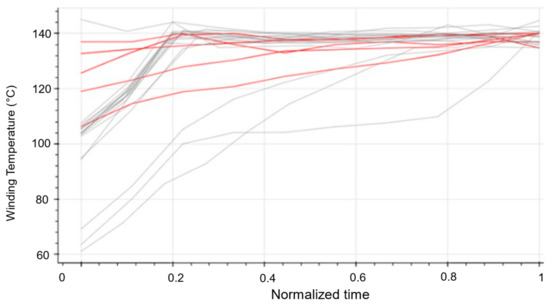 In the real data made available during this study, there are five anomaly cases labelled as overtemperature in the stator winding (Figure 12).