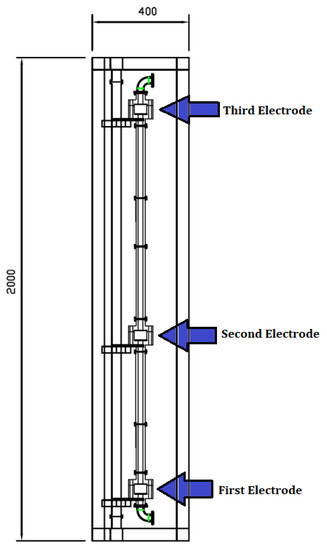 In designing the ohmic heater structure, several researchers have proposed different physical structures for the OH system, but a fundamental design structure of the OH systems is such that two or more electrodes are used to pass current through the food substance [22]. The ohmic heater can be designed as a containing vessel (batch) or a continuous flow system depending on the location and position of the electrodes [23]. In the batch OH system, the food product is in a heating chamber where the electrodes are in constant contact with the food product throughout heating, unlike a continuous flow ohmic heater (CFOH), where food product flows from an infeed reservoir tank through a heating chamber with electrodes and the heated food product is collected in an outfeed tank. Some of the published design configurations are batch ohmic heaters with two rectangular electrodes [24,25], cylindrical batch ohmic heaters with electrodes at the closed ends [26,27], continuous flow heaters with variable electrode positions [23], and continuous flow heaters with parallel spaced electrodes [28].