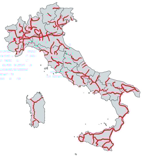 Italian railway lines on which the diagnostic vehicle under investigation operates (adapted from [7]).