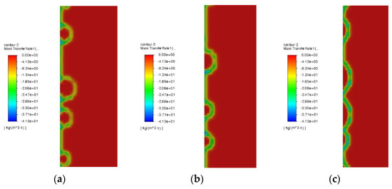 Mass transfer rate at different contact angles: (a) θ = 45°; (b) θ = 90°; (c) θ = 135°.