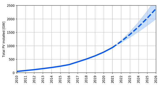 In addition, from the total 940 GW installed at the end of 2021, in the most conservative scenario, it is expected a capacity of at least 1991 GW worldwide by 2026, driven by the lower cost compared with nuclear, fossil, and other renewable sources [1] (see Figure 1).