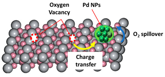Schematic illustration of Pd interactions with surface sites or the oxygen vacancies formed on reducible metal oxide. Adapted with permission from [9].