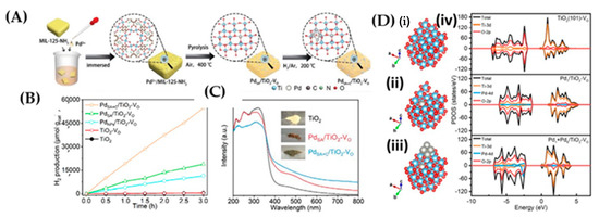 - Wang, T.; Tao, X.; Li, X.; Zhang, K.; Liu, S.; Li, B. Synergistic Pd Single Atoms, Clusters, and Oxygen Vacancies on TiO2 for Photocatalytic Hydrogen Evolution Coupled with Selective Organic Oxidation. Small 2021, 17, 1–10. [Google Scholar] [CrossRef]
