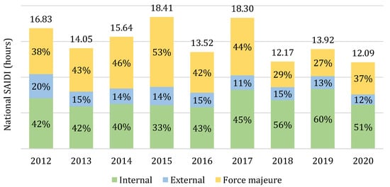 Article 28 of the Organic Law of the Electricity Sector of Venezuela defines that the National Electric Corporation (CORPOELEC), an entity attached to the Minister of Popular Power for Electric Energy (MPPEE), is the provider of the regulation service in the electrical area and of its quality in the sectors of generation, transmission, distribution, and commercialization throughout the national territory [72,73]. It is up to CORPOELEC to determine the standards for measuring the quality of electrical service, including the recording of failures and the compensation to customers affected by them [74].