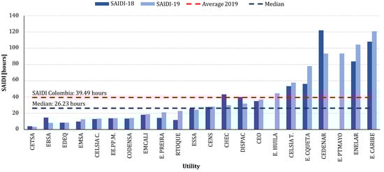 There are 28 energy distribution companies in Colombia, which belong to the public and private sector [16]. Regarding the concept of quality, the CREG regulation establishes the categories of product, service and marketing quality, but for the distribution sector, only the category related to the service provided is addressed [35]. The regulatory methodology for assessing the quality of service is based on the assessment of average and individual quality indicators. In addition, continuity indicators are complemented with incentive and compensation mechanisms for the operator and users, and the Superintendency of Residential Public Services (SSPD) constantly monitors these indicators and ensures that they are within the limits defined by current regulations [36,37].