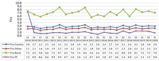The Uruguayan energy distribution sector is associated with the national administration of Power Plants and Electric Transmissions (UTE), a public company that is also responsible for the activities of generation, transmission, and commercialization of electricity [69]. Distribution is controlled by the Regulation of Quality of Distribution of the Electric Power Service (RCDSEE), which is regulated by URSEA [70]. The quality of supply involves service (duration of interruptions), commercial aspects (cuts, re-connection, billing, and complaints), and product (voltage level). To measure these aspects, indicators that must meet defined goals are used. In case the targets are not met, compensation will be paid by the UTE as discounts to affected consumers [71].
