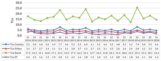 - Total average time of interruption per consumer in a Group (Tca);