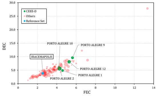 - Agência Nacional de Energia Elétrica (ANEEL). Nota Técnica n° 0102/2014—Revisão da metodologia de definição de limites para os indicadores de continuidade DEC e FEC das distribuidoras. 2014. Available online: http://www2.aneel.gov.br/aplicacoes/audiencia/dspListaResultado.cfm?attAnoAud=2014&attIdeAud=898&attAnoFasAud=2014&id_area=13t (accessed on 15 April 2022).