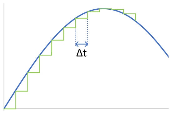 Figure 6. Real-time simulation time step Δt (shown in green) for signal (shown in blue), adapted from [57].