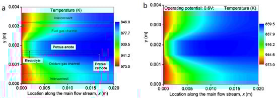 - There is a significant temperature difference along the flow direction in SOFC. Lowering the working potential is conducive to reducing the temperature difference and increasing the average current density and average power density. However, when the working potential is lower than 0.3V, it may lead to lower output power;
