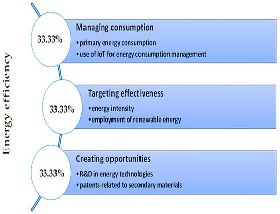 The three factors were considered equally important, as the best results will be obtained by synergically considering managing consumption, targeting effectiveness, and creating opportunities. The three factors, regardless of the number of KPIs considered, must consider the reconciliation of the needs of society in terms of energy consumption with sustainable economic growth. In this way, the current model moves away from the dominant global economic paradigm and does not subordinate energy efficiency to economic growth at all costs. Moreover, the original operational framework has in view that simplicity is a virtue in science [37,38,39], and considers comprehensive KPIs to accurately render the energy-efficiency quintessence, based on safe and rational consumption.