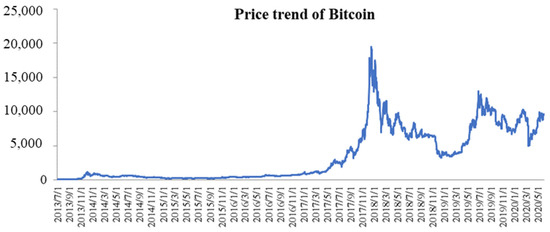 Price trend of Bitcoin. Note: The X-axis refers to the time while the Y-axis represents the price of Bitcoin per unit.
