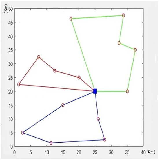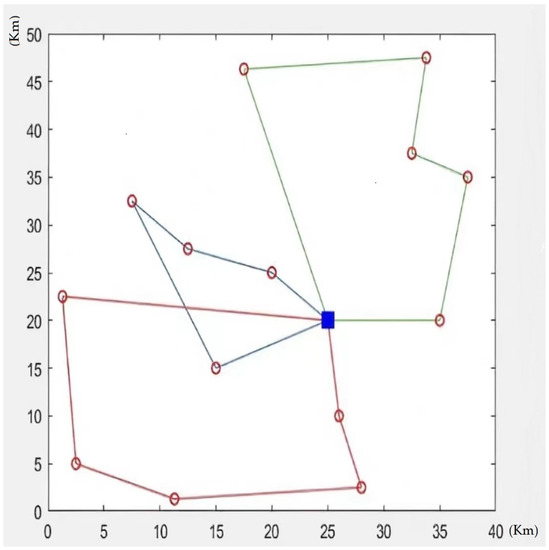 - Baker, B.M.; Ayechew, M.A. A genetic algorithm for the vehicle routing problem. Comput. Oper. Res. 2003, 30, 787–800. [Google Scholar] [CrossRef]