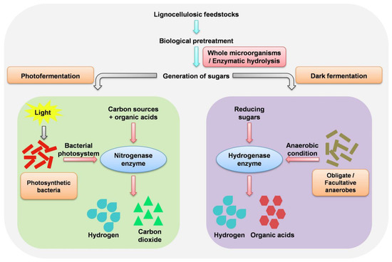 - Singh, N.; Sarma, S. Biological Routes of Hydrogen Production: A Critical Assessment. In Handbook of Biofuels; Sahay, S., Ed.; Academic Press: Cambridge, MA, USA; Elsevier: Amsterdam, The Netherlands, 2022; pp. 419–434. [Google Scholar] [CrossRef]