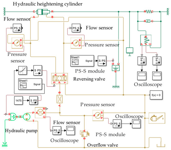 - The model of the hydraulic heightening system was established, and the typical faults in the system were taken as the research object. Pressure, flow, displacement, and speed sensors were used to collect the fault data.
