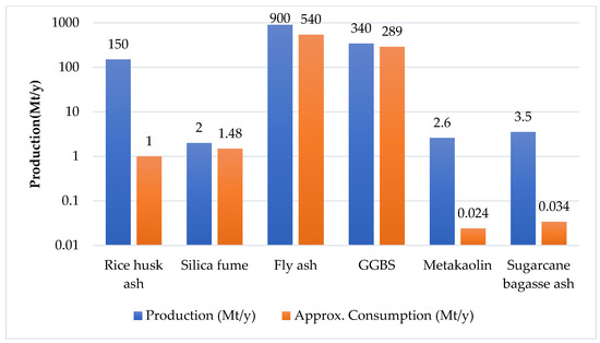 - Chinnu, S.N.; Minnu, S.N.; Bahurudeen, A.; Senthilkumar, R. Influence of Palm Oil Fuel Ash in Concrete and a Systematic Comparison with Widely Accepted Fly Ash and Slag: A Step towards Sustainable Reuse of Agro-Waste Ashes. Clean. Mater. 2022, 5, 100122. [Google Scholar] [CrossRef]