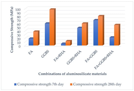 | GGBS+FA (40:60) | 8 M | 1.5 | Ambient temperature (27 ± 2 °C) | 60 | - | - | - | [72] |