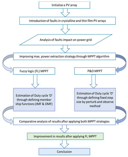 Flow diagram of MPPT strategies for comparative analysis of faults.