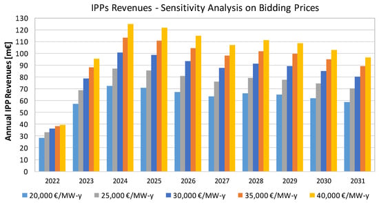 Bid caps are also usually set and their purpose is to protect consumers from unforeseen issues that could emerge in the auction, such as absence of competition or market power exercise. Bid caps are usually differentiated between existing and new capacity, whereas auction price caps can also be different. In Italy, the bid cap for offers submitted by existing capacity lies in the range from 25,000 €/MW-year to 45,000 €/MW-year, taking into account the yearly fixed operating costs of combined cycle gas-fired plants (not including depreciation). The bid cap for new capacity (which also serves as the auction price cap) lies in the range from 75,000 €/MW-year to 95,000 €/MW-year []. A similar differentiation between existing and new capacity takes place in Poland, where the bid cap for the price-making new capacity is set as 1.5 × Cost Of New Entry (CONE) and lies in the range 97,500–105,000 €/MW-y, while the bid cap for the existing capacity acting as price-takers is equal to 45,000 €/MW-y []. Similar price caps are established in Belgium (80,000–105,000 €/MW-y), Ireland (138,450 €/MW-y for new capacity and 46,150 €/MW-y for the existing capacity) and Great Britain (75,000 £/MW-y for new capacity and 25,000 £/MW-y for the existing capacity). In the US, the price cap in the PJM region is set as a function of the CONE minus the estimated revenues acquired by the energy and ancillary services markets, while in New England the price cap and price floor (which correspond to the starting and end price of the descending clock auction format, respectively) are calculated as a function of the CONE []. In Germany, the price cap has been set equal to 100,000 €/MW-y [], while in Cyprus it is expected to be equal to 33,000 €/MW-y. Finally, in France the maximum and minimum bid limits are not defined on a permanent basis but change every year. The price cap in 2017 was equal to 20,000 €/MW-y, while in 2018 and 2019 was equal to 40,000 €/MW-y and 60,000 €/MW-y, respectively.