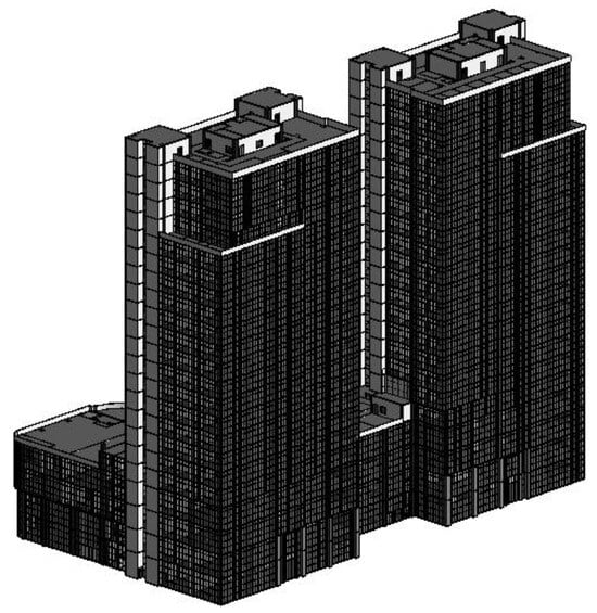 The BIM modeling method is a process of building and managing building projects through digitization and collaboration. In BIM modeling, various software tools are used to create and edit building models, among which Revit 2018 is a commonly used BIM modeling software. Revit is a professional BIM modeling software developed by Autodesk. It provides a rich set of tools and functions for creating, editing, and managing building models. The process of BIM modeling usually includes the following steps: determining LOD and developing unified modeling standards; model creation using BIM software to establish the geometric shape of the building model; parametric design to automatically adjust the size, relevance, and attributes of the model by setting parameters and constraint conditions; data input, embedding data into the model; output and extract data for analysis based on the BIM model. Figure 3 illustrates the architectural model diagram of the case studied in this article.