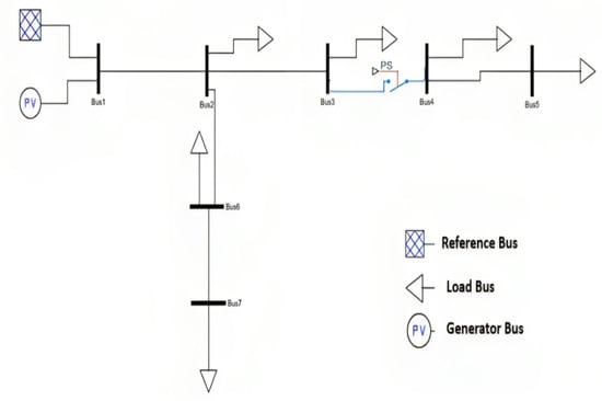 The IEEE 7-Node network consists of 7 nodes and a switch. One node is a generator bus and the others are load buses. The network includes loads and generators connected to different buses. The loads represent the power consumption at each bus, while the generators represent the power generation (see Figure 4).