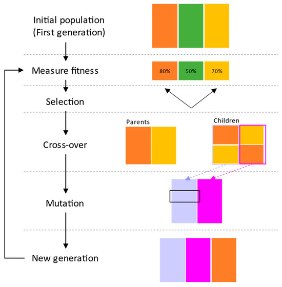 - Yang, X.-S. Chapter 6—Genetic Algorithms. In Nature-Inspired Optimization Algorithms, 2nd ed.; Yang, X.-S., Ed.; Academic Press: Cambridge, MA, USA, 2021; pp. 91–100. [Google Scholar]