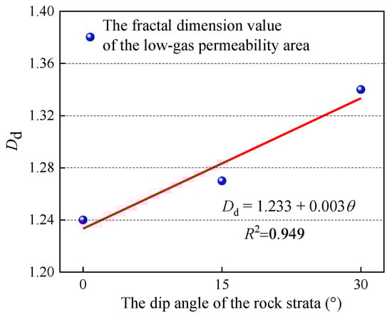 Evolution law of fractal dimension of low-gas permeability area under different dip angles of rock strata.