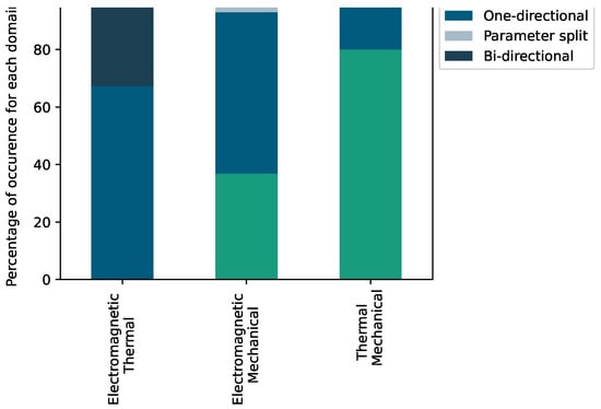 Reference [] highlights and categorizes couplings between engineering domains in the multidisciplinary optimization of electric machines. The proposed categorization was applied within the framework of the systematic review in this paper; see Section 4.3.