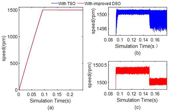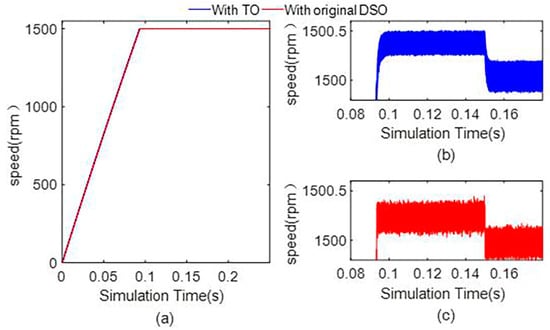 - The estimation accuracy of the speed of the TO and improved DSO is 1500.0396 ± 0.0090 and 1500.0320 ± 0.0030 under a 0.4 Nm load, respectively. And the ripple of the current of the iq of the improved DSO is 4.64%. The simulation results show that the proposed dual second-order observer can approach the estimation accuracy with the third-order observer and has a relatively small ripple of current and mechanical angular velocity.