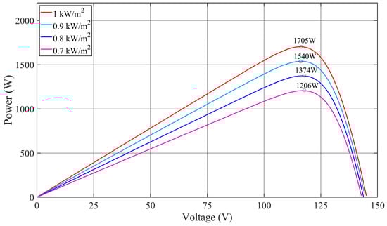 P-V characteristic curve under different irradiances.