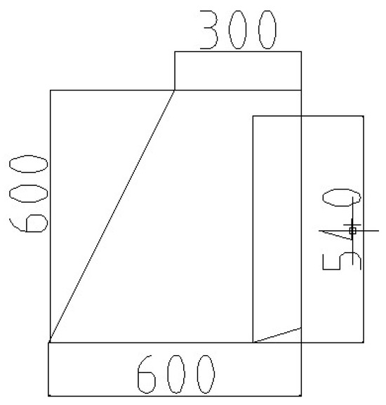 Figure 6 represents a schematic diagram of the vertical tail. The length of the vertical tail moment arm is L V T = 1.565 m, and the vertical tail volume coefficient is C V T = 0.025 .