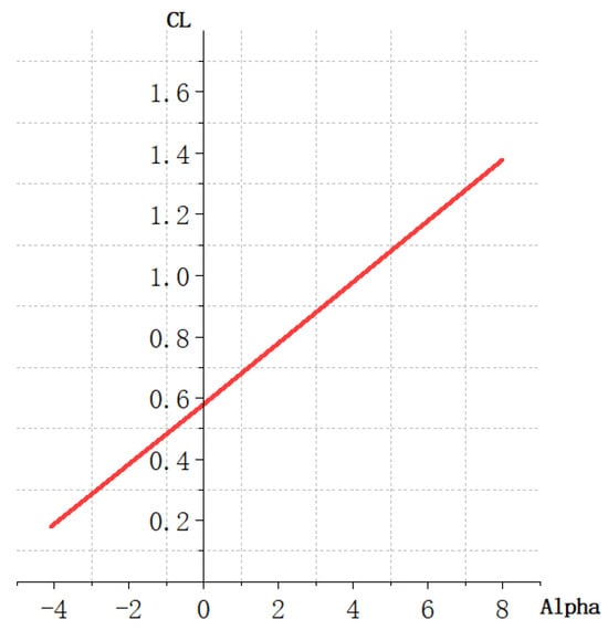 Figure 7. Lift coefficient (CL) versus angle of attack (Alpha) curve for the wing.