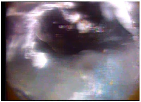 The junction of the pedosphere section and bedrock section is exactly the position where soft and hard strata intersect. There is a delay time between roof caving and bedrock strata caving or deformation. Once the whole bedrock strata subside, the super-thick pedosphere strata above the bedrock strata subside accordingly due to their strong fluidity and weak capacity to resist deformation. This subsidence soon influences the surface and leads to basin-shaped surface subsidence. At this time, the well body deviates from the axis towards the gob side, displaying a curved shape (Figure 4). In Figure 4, the well body is fixed into bedrock strata and unable to deform. As can be observed from multiple deep-borehole television logging videos of the same well (Figure 5), the well body at the junction of the pedosphere strata and bedrock strata is influenced by a “cantilever beam effect” and can break easily. The well on the gob side moves inward under pressure (Figure 5), while the well on the other side breaks under the action of tensile stress. Consequently, the effective cross-section of the well gradually shrinks until it is blocked or broken. Once the well is broken, sands, soil and water will enter the well first and then flow into the mining space, seriously threatening safe production in the mine.