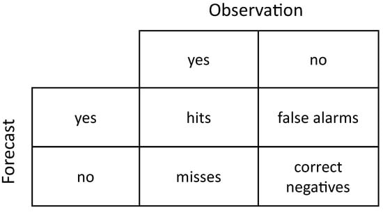 - Hogan, R.J.; Mason, I.B. Deterministic Forecasts of Binary Events. In Forecast Verification; John Wiley & Sons, Ltd.: Hoboken, NJ, USA, 2011. [Google Scholar] [CrossRef]