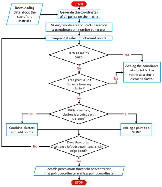 37] for the calculation of the site percolation threshold using the Monte Carlo method, a statistical calculation algorithm was assumed, which provides the result with a very large number of iterations and a much lower demand for computing power. The calculations were performed for the matrix with the size