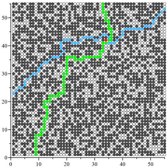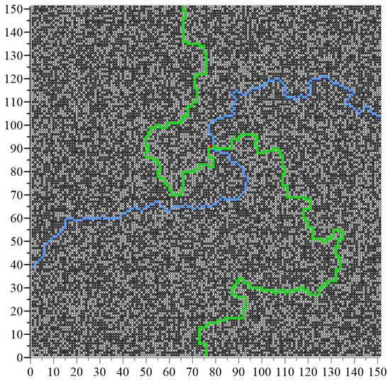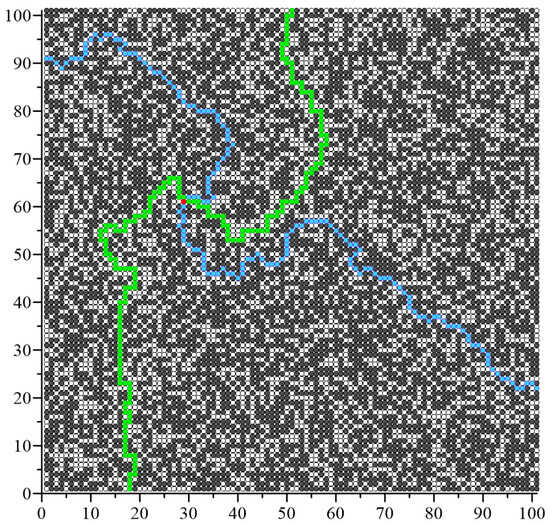 Next, the logic of the model under study was determined. According to percolation theory, in the simulation, all