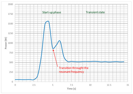 During startup, this amplitude will be higher and dependent on damping and primarily on the time and manner of passing through resonance. Amplitude studies during startup are presented in the article [16], although they did not account for the startup time and its impact on electrical power consumption.