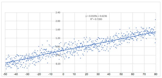 Through conducting their own research, the authors were able to determine a trend line for the thermal conductivity of a 48% mass concentration aqueous solution of potassium formate with the equation y = 0.0109x + 0.6236 and a coefficient of determination of R2 = 0.7283. This resulted in the creation of Table 8, which shows a consistent and linear increase in thermal conductivity values.
