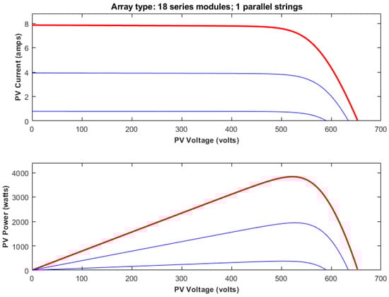 A graphical analysis of a PV array output I-V curve is shown in Figure 2. The PV array—I-V and P-V characteristics are shown below; the bend of the curve is the theoretical maximum power point (MPP).