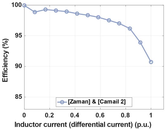 Energy efficiency as function of inductor current (p.u.) of DPC converter.